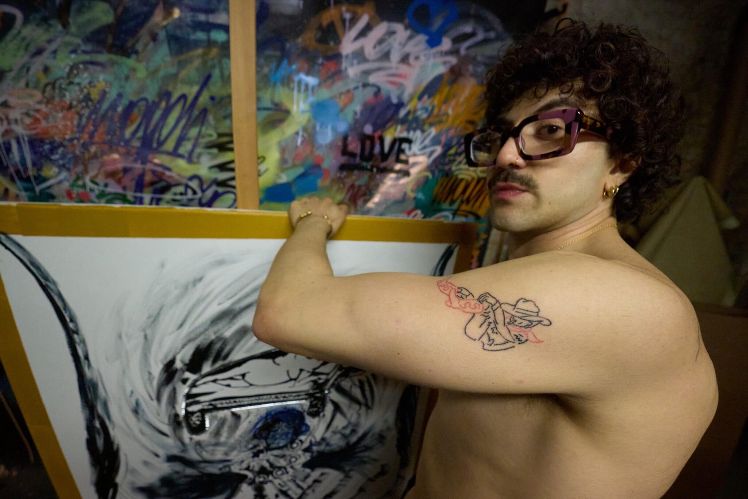 An explosion of layered color, traced with bold, searching lines
